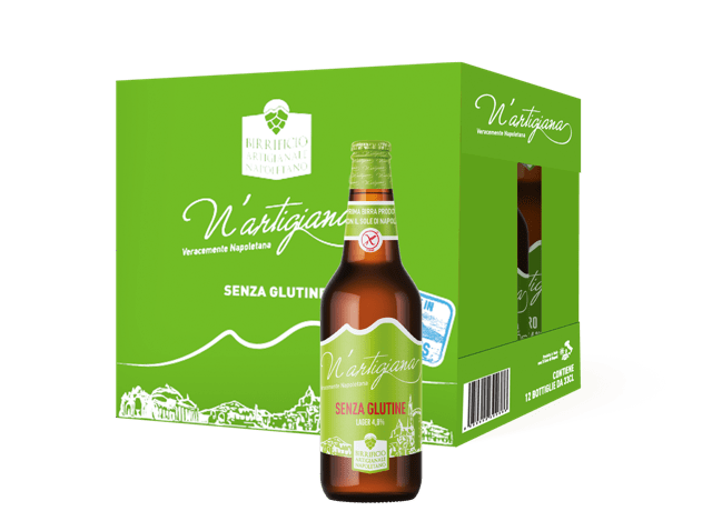 La birra N’Artigiana senza glutine è garantita dall’Associazione Italiana Celiachia. La prima birra napoletana senza glutine che viene prodotta con ingredienti che vengono selezionati accuratamente, e analizzata in ogni fase del processo produttivo per garantire un contenuto di glutine inferiore a 10ppm. Si tratta di una Lager dal colore oro brillante e un grado alcolico di 4,8% vol.